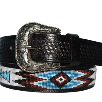 देशी शैली चमड़े की पट्टी हस्तनिर्मित पश्चिमी डिजाइन बीड बेल्ट पश्चिमी काउबॉय चमड़े का बेल्ट